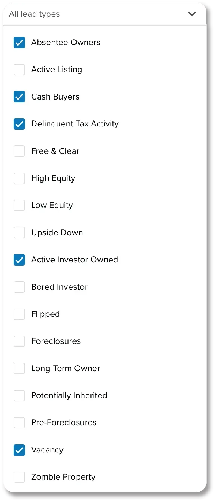 Unlock the ability to choose several lead types in one search using Leadpipes Ai Suite.